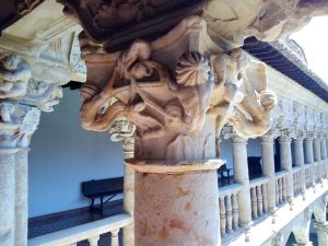 - Los capiteles son una auténtica exhibición de creatividad: figuras fantásticas, monstruos, grutescos y motivos vegetales que convierten cada columna en una pieza única.